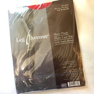 * Leg Ave #1912 Thigh High Red Sheer Lace Top w/ Satin Bows NWT NOS