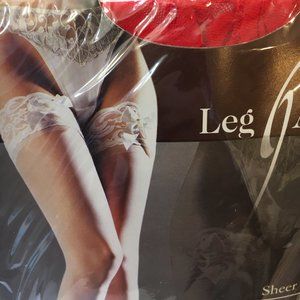 Leg Avenue Red Sheer Thigh Highs Lace Top #1912 NWT NOS