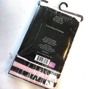 Leg Ave Soft Pink & Blk Stripe Thigh Highs NWT NOS