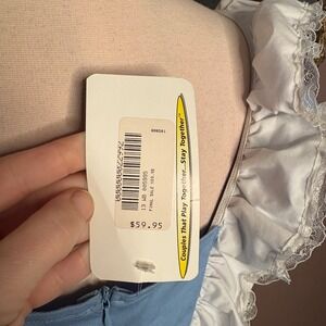 Step into a fairytale with this Leg Avenue Alice in Wonderland costume dress, brand new with tags. Featuring puff sleeves, lace trim, and an attached apron with a satin ribbon tie, this playful blue and white dress is perfect for Halloween, cosplay, themed parties, or a fun night in.