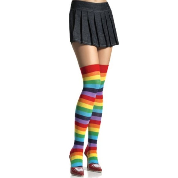 Leg Avenue Cherry Rainbow Thigh High Socks - NEW