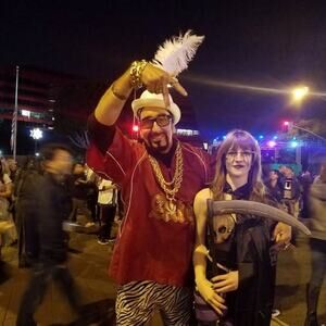 I bought this when I went to LA to see The Nightmare Before Christmas played with a live orchestra and actor performances. I had a specific outfit set up for the event, so this costume was only worn for 1.5 hours for a stroll down Sunset, which was its own unexpected event for which my Hollywood Bowl costume didnt make much sense. I don't have any cleavage to spill into the skulls, so I molded them with Kleenex(meaning no boob sweat from a stranger), which worked nicely. I added the fake blood drips(still remain). It's been packed away ever since, I've just been too lazy to dig it out and take pictures. The scythe blade was purchased separately and can be shipped, but the handle part is too long.
