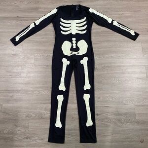 Size XL women’s skeleton costume in great preowned condition no flaws normal wear one piece suit zip closure by leg avenue
