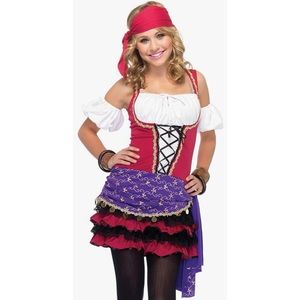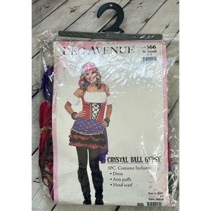 New, Leg Avenue Crystal Ball Gypsy costume includes dress, arm puffs, & head scarf.
