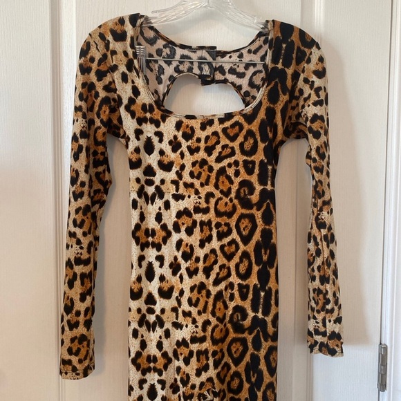 Chic leopard print dress. Features stylish design and comfortable fit.