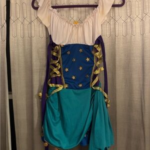 Comes with dress, vest, headband, earrings and necklace. Vest had stitching that come apart, has been fixed. See pic.