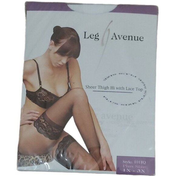 Leg Avenue Plus Size Stay Up Lycra Thigh Hi With Lace Top Size 1x-3x WHITE