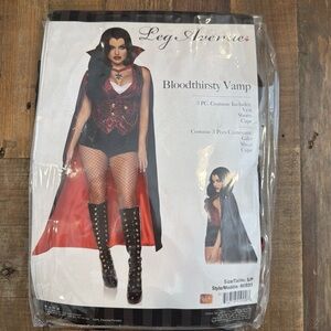 Charming Gothic costume by Leg Avenue. Includes a red and black dress with a matching cape. Perfect for themed events.