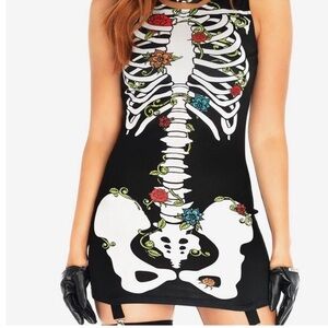 Leg Avenue Skeleton Bones Bodycon Halloween Tank Dress with Garter Snaps Sz S/M