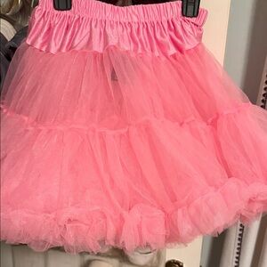 Charming pink tulle skirt. Ideal for costumes or fun outfits. Comfortable elastic waistband.
