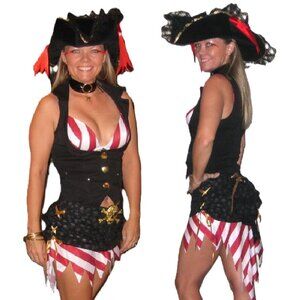 💀Leg Avenue Women's 3 PC BOOTY PIRATE Medium Halloween Costume + Hat & Choker