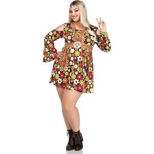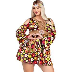 Leg Avenue Womens Size 1/2XL 2 Pc Starflower Hippie Costume Dress and Headband
