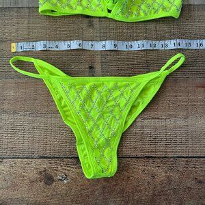 Leg Avenue women’s studded rhinestones neon cheeky tie bikini -L