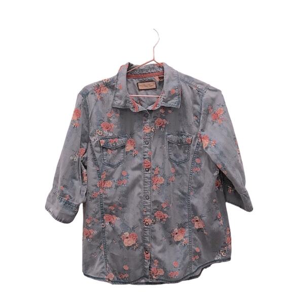 Legacy Falls snap top size medium 3/4 Sleeve Floral Denim Blouse