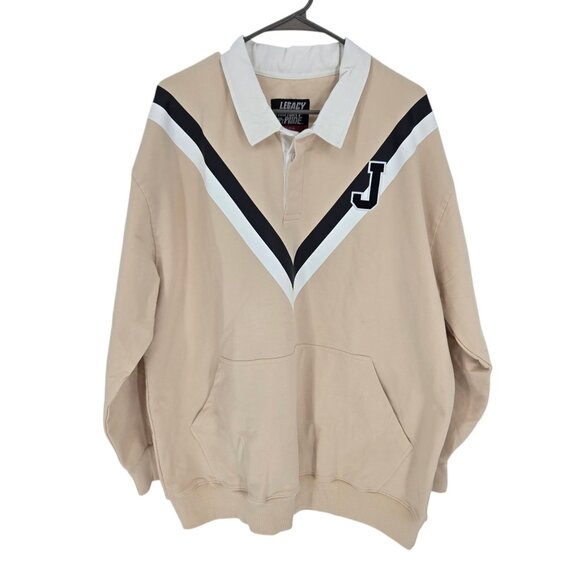 Legacy history Pride Jackson State University Tigers Rugby long sleeve shirt 2X Varsity collared pockets hidden button embroidered rubber patch on sleeve Good Preowned Condition May show normal wash wear color may appear differently depending on light Mississippi college school