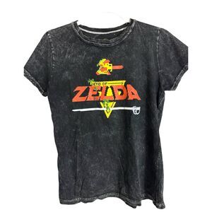 Legend of Zelda t-shirt, pixel graphic tee, acid wash Zelda shirt, size M Nintendo shirt, pre-owned gamer apparel, retro gaming t-shirt, unique acid wash design, Nintendo fan merchandise, casual graphic tee, Zelda collectible clothing, trendy gaming fashion, soft graphic t-shirt, Legend of Zelda fan gear, vintage style gaming shirt, comfortable gamer wear, nostalgic video game tee.