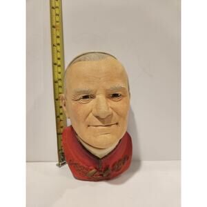 The Legend Products Pope John Paul II England 1980 Chalkware Bust Bossons is a handmade decorative collectible art piece featuring a multicolor chalk bust of Pope John Paul II. Manufactured in the United Kingdom in 1980, this original religious-themed sculpture stands at 6.5" tall and is part of the Bossons collection by Legend Products. Perfect for any room, this unique item captures the essence of Pope John Paul II and is a special addition to any collection. We take pride in safe packaging our sales.