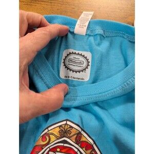 This turquoise girls’ t-shirt features Link in a stained-glass window design. Official Nintendo licensed product, printed in the U.S.A. with eco-friendly inks. Made of 100% preshrunk combed cotton – lightweight and soft.