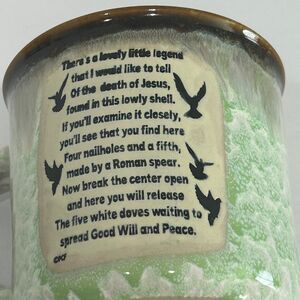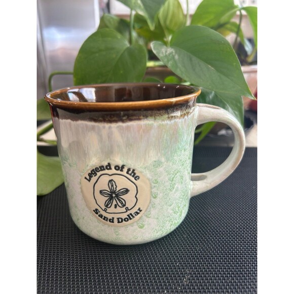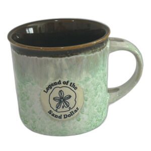 Legend of the Sand Dollar Ceramic Mug Colors Brown Green Cream Size 4” x 4”