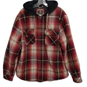 Legendary Outfitter Flannel Shirt Jacket Men Sz L Red Hood Grunge Quilt Lined