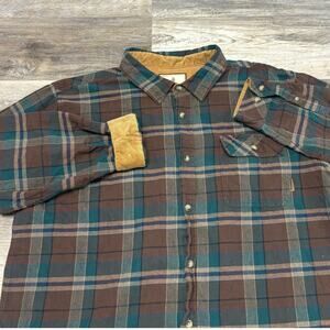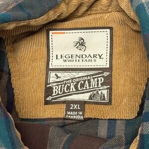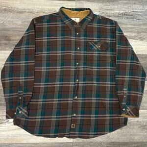 Legendary Whitetails Brown Green Plaid Men 2XL Hunt Work Buck Camp Shirt Flannel