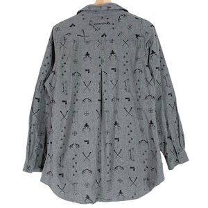 Features: this is a very high quality and very warm yet durable flannel fabric with an over all hunting western cowboy style pattern. Henley neckline. Collared. Pull over.