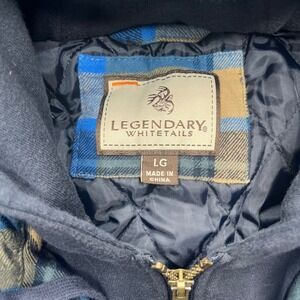 Legendary Whitetails Flannel Hooded Shirt Jacket Blue Plaid Mens LG Quilted