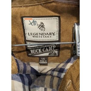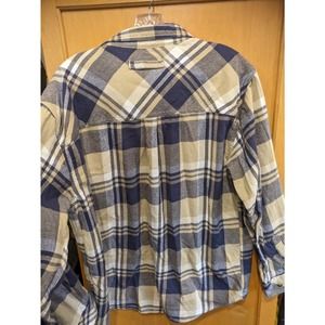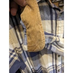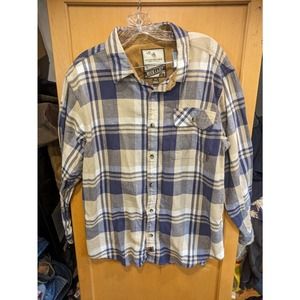 Legendary Whitetails Flannel Mens Large Tan and Blue Plaid Long Sleeve Flip Cuff
