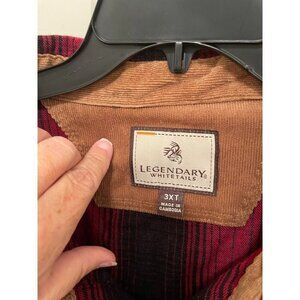 Classic red and black plaid flannel SHACKET shirt from Legendary Whitetails, designed for men. Made with 100% cotton, it offers warmth and comfort in a stylish 3XT size.