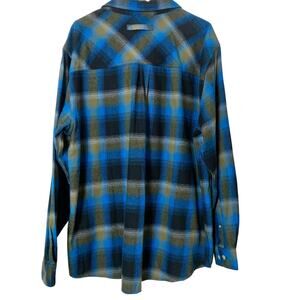 Legendary Whitetails Shirt Buck Camp Mens XL Blue Tan Plaid Flannel Button Up