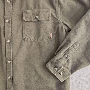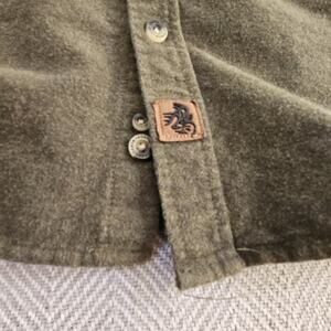 Available in a rich hunter green, this men's XL flannel button-up combines functionality with a touch of designer flair. Its durable cotton fabric and heavyweight construction make it ideal for varying seasons, ensuring comfort and warmth whether you're out on the trails or enjoying a casual evening. The shirt's thoughtful details include a collared neckline with a point collar style, long sleeves, and a chest size of 50 inches, offering a regular fit that's not too snug or too loose.