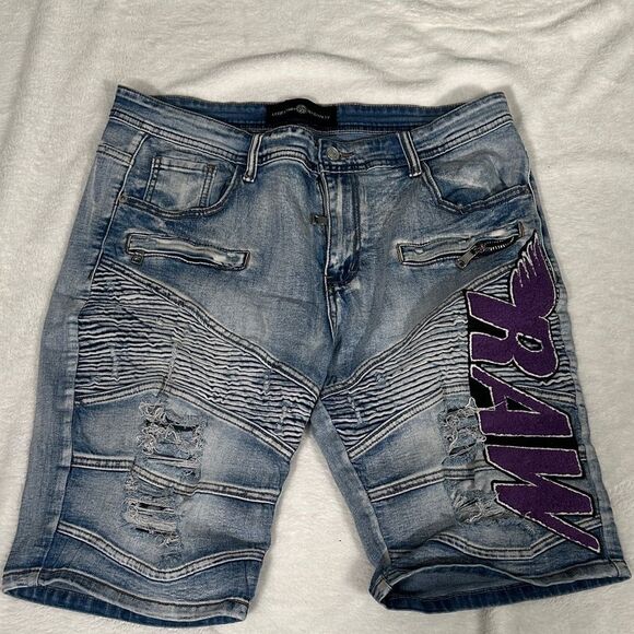 Legendary Rawyalty Men's Blue Denim Shorts with Purple Raw Accent Patch! Size 38