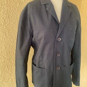 Legends Unisex Heavy Canvas Jacket in dark blue, size XL. This pre-owned jacket is built with durable heavy cotton canvas for long-lasting wear. Features button closure, multiple utility pockets, and a classic workwear style perfect for outdoor activities, casual layering, or rugged streetwear looks. The jacket shows normal signs of gentle use but remains in great overall condition with no major flaws.