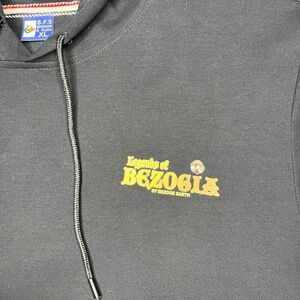 Dark green hoodie featuring 'Legends of Bezogia' graphic. Comfortable and stylish.