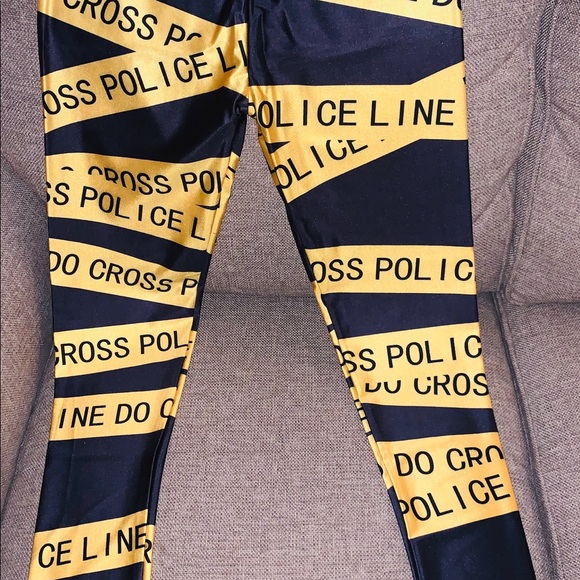 Do cross police line is the words on leggings
