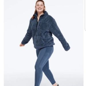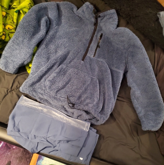 pink velvet legging and sherpa top set in old school blue. top worn 2x. bottom nwot.