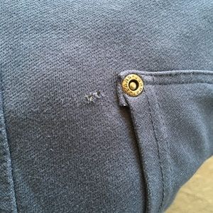 Good used condition. Blue one has a snag on the butt, pictured. Brown had no holes or stains