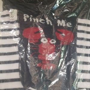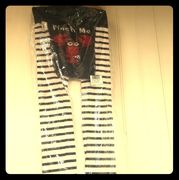 Lobster or "Lobstah" lovers fun kids leggings with "Pinch Me" on the Back side. Front is plain stripes.