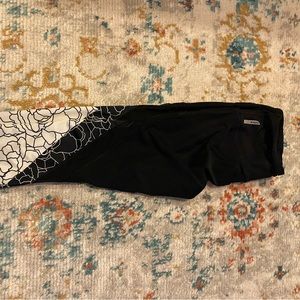Black and white leggings with black mesh and floral patterns