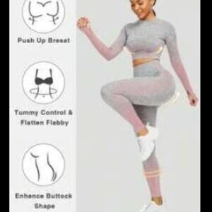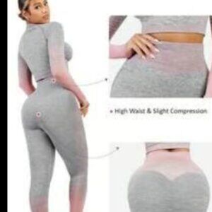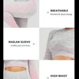 Leggings and Long Sleeve Crop Top Matching Fitness Athletic Workout Sports Set. Ombre Gray and Mauve Pink. Leggings High Waist. Crop Top Thumb Holes. Stylish, Comfortable. Worn Once. Like New Condition.