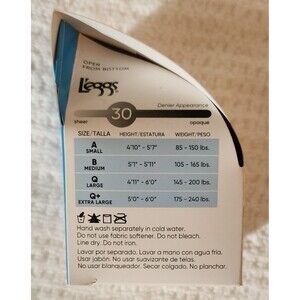 Leggs Sheer Energy Size Q+ Jet Black Control Top Cool Comfort Medium Leg Support