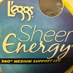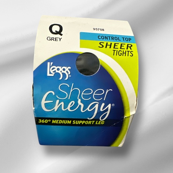 Leggs sheer energy gray control top sheer tights 360 medium support leg size Q