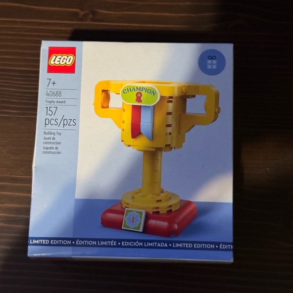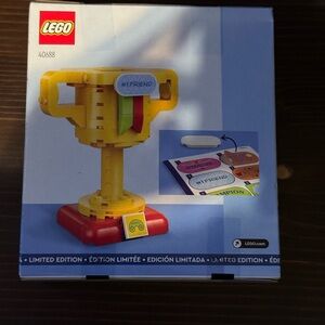 Build a champion's trophy with this LEGO set. Features bright yellow and red pieces. Perfect for creative play. Brand new in box