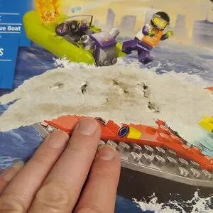 Exciting firefighting adventures await with this LEGO City Fire Rescue Boat (60373) toy playset for kids Ages 5+ years old, featuring a cool fire rescue toy boat that floats in water and speedboat dinghy. A speedboat dinghy has caught fire and the pilot has jumped overboard! Kids send the LEGO City fire rescue boat toy into action. They need to launch LEGO water elements from the boat's extinguisher and then send up the cool jetpack firefighter to blast those flames. Just add the 3 included LEGO firefighter minifigures and let the fun begin. The Fire Rescue Boat toy measures over 3" high, 9" long