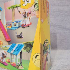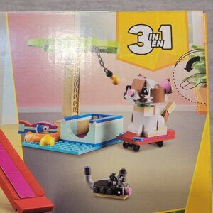 This LEGO® Creator set gives kids 3 different small animal toys to build using the same bricks. They can build a hamster toy playhouse, rebuild it into a play area for a cat with a spinning wheel and a skateboard or a doghouse where a dog can slide down a ramp and play with cool toys.