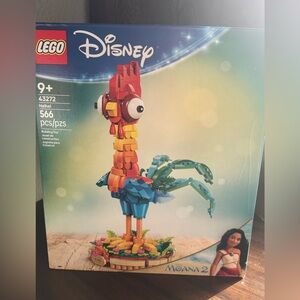 Lego Disney set featuring a colorful Heihei. Includes 566 pieces. Vibrant red, blue, and green elements.