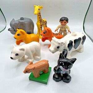 Lego Duplo Animals Lot Set Of 8 Zoo Keeper Cow Giraffe Polar Bear Tiger Pig