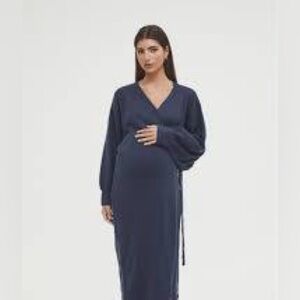 Legoé Heritage Maternity Blue Knit Cotton Wrap Dress Size 2(6/8)