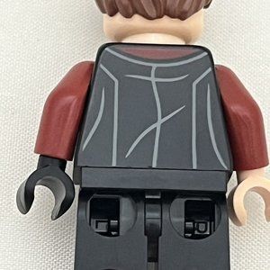 This is a Lego minifigure from Marvel’s Age Of Ultron. It’s Hawkeye and he’s got the black and dark red suit with reddish brown spiked hair. This minifigure is in two sets 76030 and 76042.  He is missing his bow.