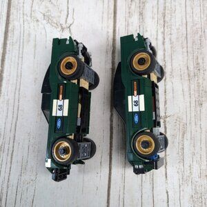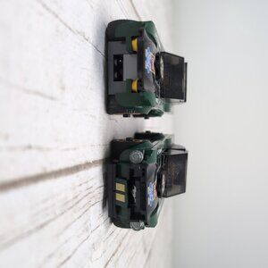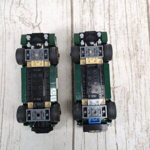 prebuilt may not be totally complete. includes 1 instruction manual and two cars no mini figures